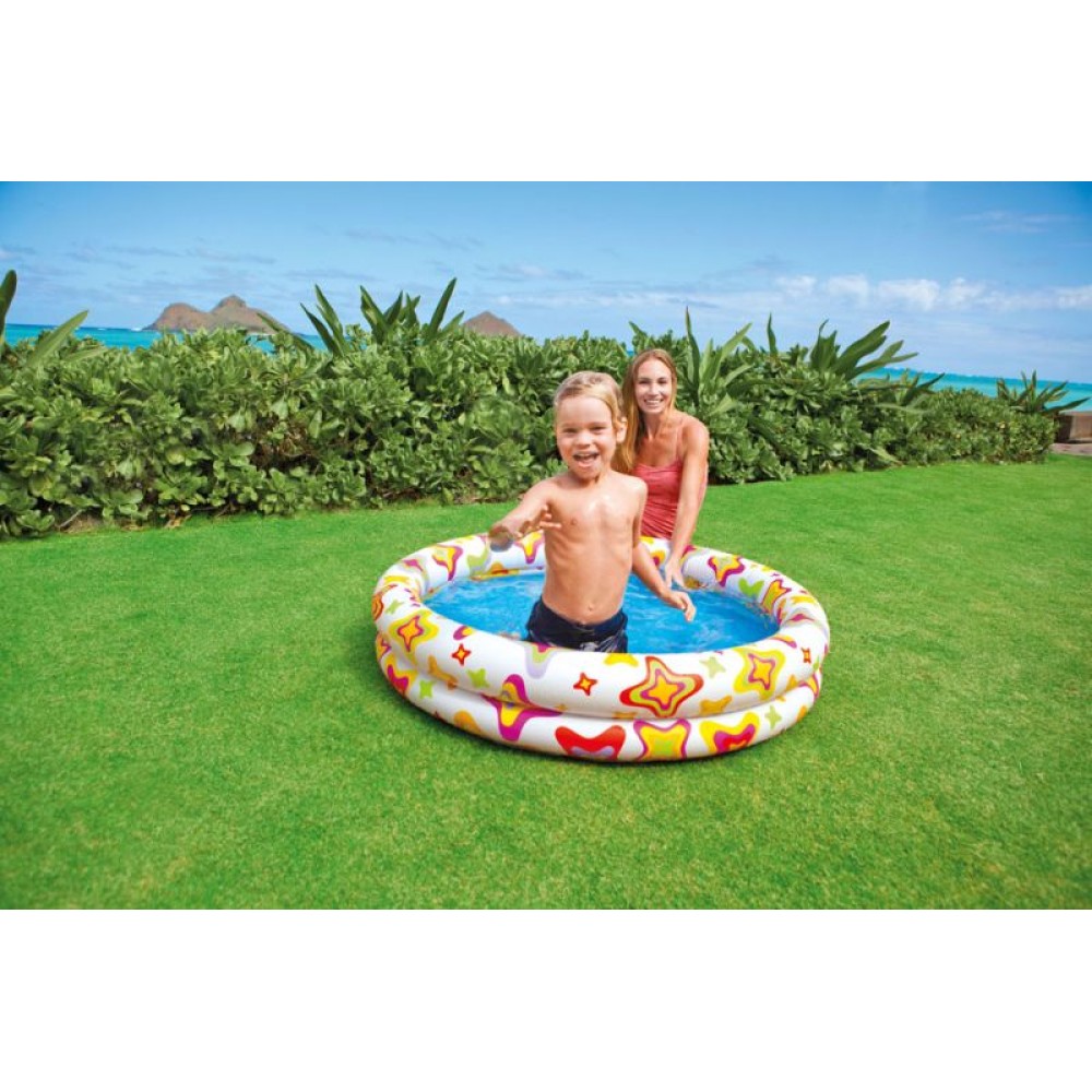 INTEX Basenik dmuchany 122x25cm 00830051Dzięki temu basenikowi Intex, twoje dziecko przeżyje niezwykłe wakacje. Znajduje się w nim wszystko, czego twój maluszek potrzebować będzie w upalne dni! Dmuchany basenik o wymiarach 122 cm x 25 cm. Basenik napełnisz wodą aż do wysokości 18 cm. Basen pokryto fantazyjną grafiką z kolorowymi gwiazdkami. Wykonano je z mocnego winylu, gdyby jednak pojawiły się w nim przetarcia, załatasz je za pomocą dołączonej łatki naprawczej.