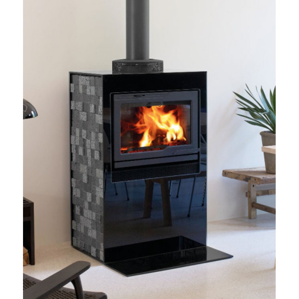 Jotul CUBE 530 GL Obudowa z wkładem kominkowym 341283+CUBEGLBoki z kamienia wulkanicznego, wykończenie z czarnego szkła.