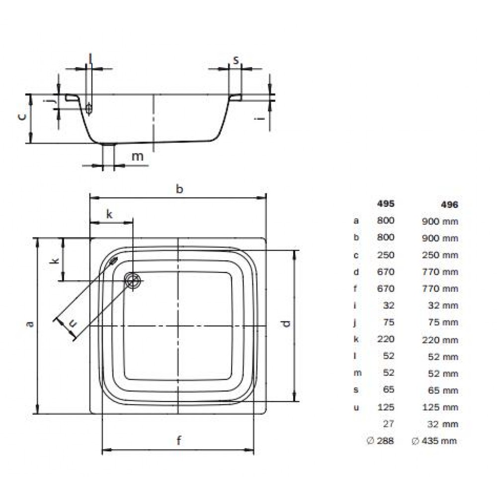 Kaldewei Sanidusch 496 brodzik 90 x 90 cm z otworem przelewowym 332100010001Wymiary: 90 x 90 cm