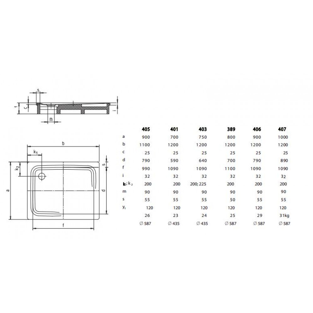 Kaldewei SuperPlan 403-2 brodzik 75 x 120 x 2,5 cm z nośnikiem ze styropianu 430348040001Wymiary: 75 x 120 cm