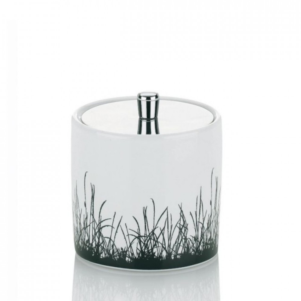 KELA Pojemnik na waciki kosmetyczne KL-21352-Materiał: biała błyszcząca ceramika/stal nierdzewna