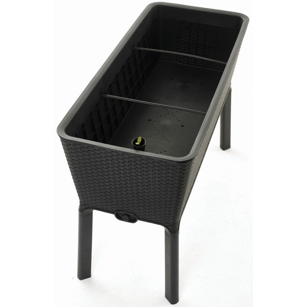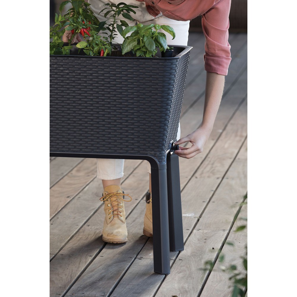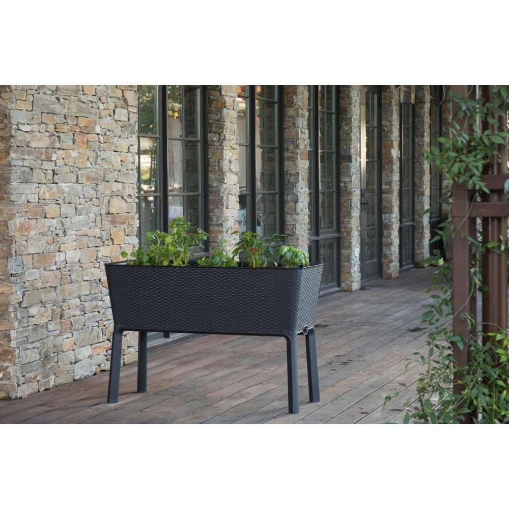 Zamień swoją zewnętrzną przestrzeń w prawdziwą ekologiczną oazę. Donica Full Bloom o fakturze płaskiego rattanu to przemyślany, wygodny w użyciu system do uprawy warzyw, ziół i kwiatów. Podwyższona, ergonomiczna konstrukcja umożliwia wykonanie niezbędnych prac ogrodowych bez konieczności schylania się, a wbudowany system kontroli nawadniania roślin ułatwia ich odpowiednią pielęgnację.