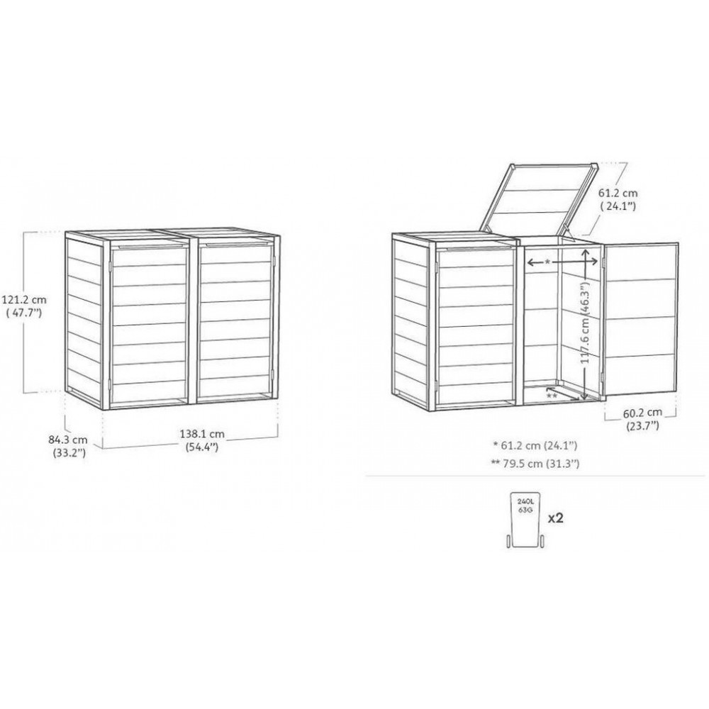 - Pro odeslání do Česka navštivte KETER HIDE AWAY 2x240L Skříňka na popelnice, 138,1 x 84,3 x 121,2 cm, šedá 17213790