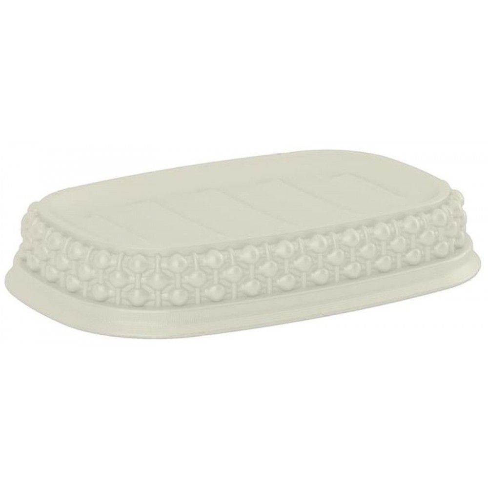W obu przypadkach wygodnie się z niej korzysta, a sama forma, choć prosta, prezentuje się bardzo ładnie. Korpus mydelniczki został ozdobiony charakterystycznym, wyglądającym jak pleciony wzorem.