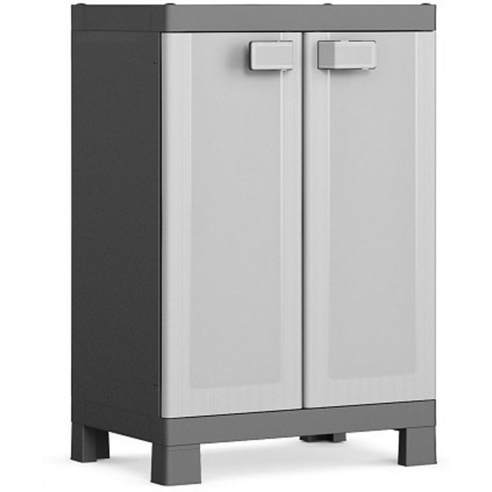 KIS LOGICO LOW Szafka ogrodowa 65x45x97cm szary/czarny 9635000Szafka na narzędzia Logico Low Cabinet uzupełniona jest 2 półkami o wytrzymałości 15 kg każda. Półki można dowolnie ustawiać, dopasowując ich wysokość do naszych potrzeb. Dodatkowo istnieje możliwość montażu wewnątrz pojemników Tribac, które dodatkowo pomogą w uporządkowaniu przestrzeni. Drzwi szafki ogrodowej wyposażone są w eleganckie uchwyty, dzięki którym bardzo wygodnie zamyka się i otwiera szafę.