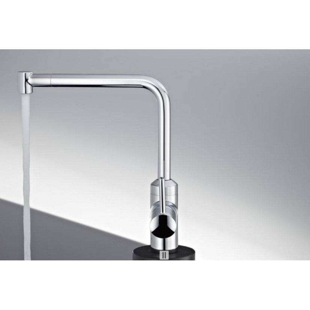Płynna linia i oszczędny w wyrazie design dodają jej odrobinę ekstrawagancji. Idealna do kuchni utrzymanej w stylistyce minimalizmu. Zakres obrotu wylewki o 360° daje wiele swobody. Bateria posiada zabezpieczenie przed zassaniem brudnej wody do sieci. W KLUDI L-INE wykorzystano nowy technologiczny majstersztyk T-Slide. Teleskopowo wysuwaną wylewkę można płynnie wyciągnąć, a jej maksymalny wysięg dochodzi do 760 mm.