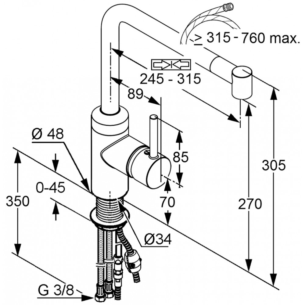 wyciągana, obrotowa (220°) wylewka teleskopowa