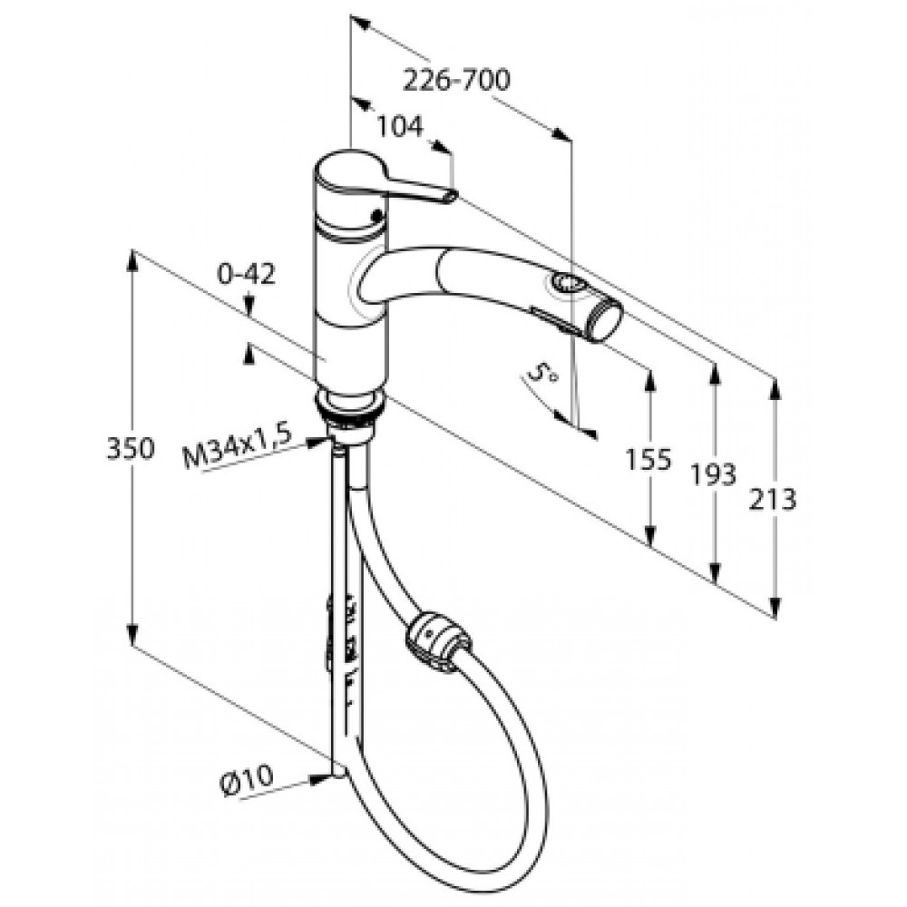 obrotowa (110°), wyciągana rączka natrysku