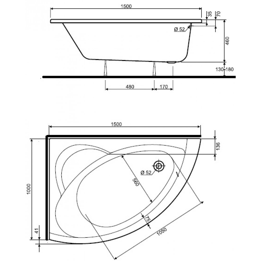 KOŁO Neo Plus wanna asymetryczna 150 x 100 cm, lewa XWA0751000- Wymiary: 150 x 100 cm
