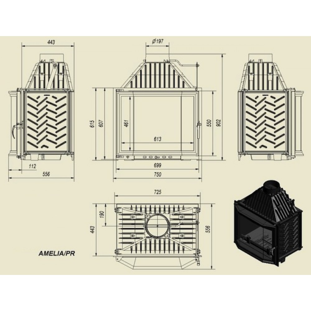 KRATKI Amelia 25 panoramiczny wkład kominkowy fi 200Dane techniczne: