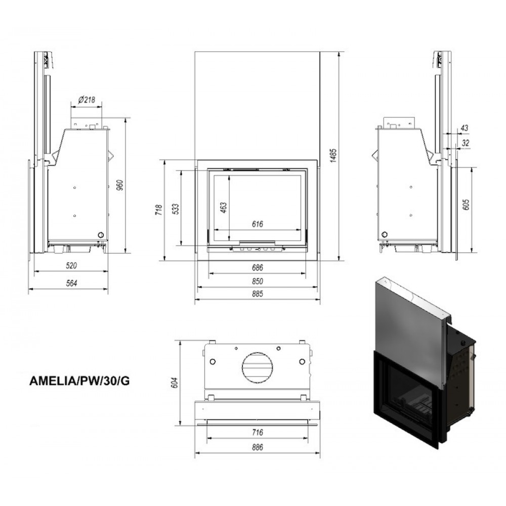 - Pro odeslání do Česka navštivte KRATKI AMELIA/PW/30/G krbová vložka teplovodní, výsuvné sklo, bez chladící smyčky