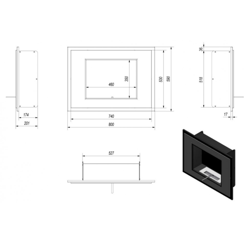 Kratki biokominek ALPHA miedź galwanicznaDane techniczne: