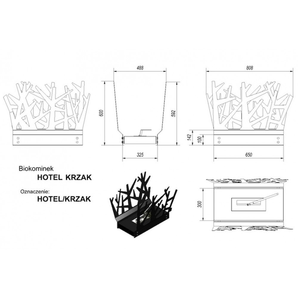 KRATKI Biokominek HOTEL KRZAK Czarny