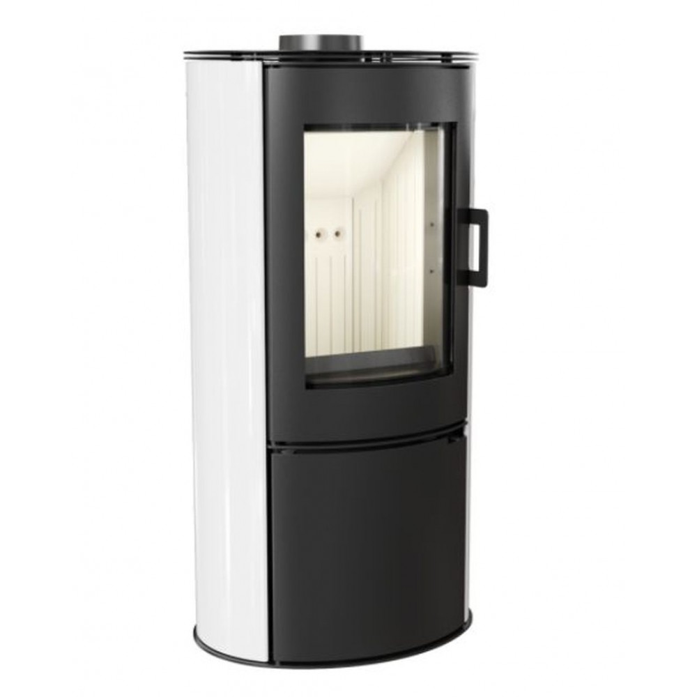 KRATKI Kominek wolnostojący KOZA AB S/DR kafel białyKoza AB o cylindrycznym, nowoczesnym kształcie to świetne rozwiązanie dla osób, które pragną prawdziwego ciepła domowego ogniska, ale nie dysponują dużą przestrzenią.