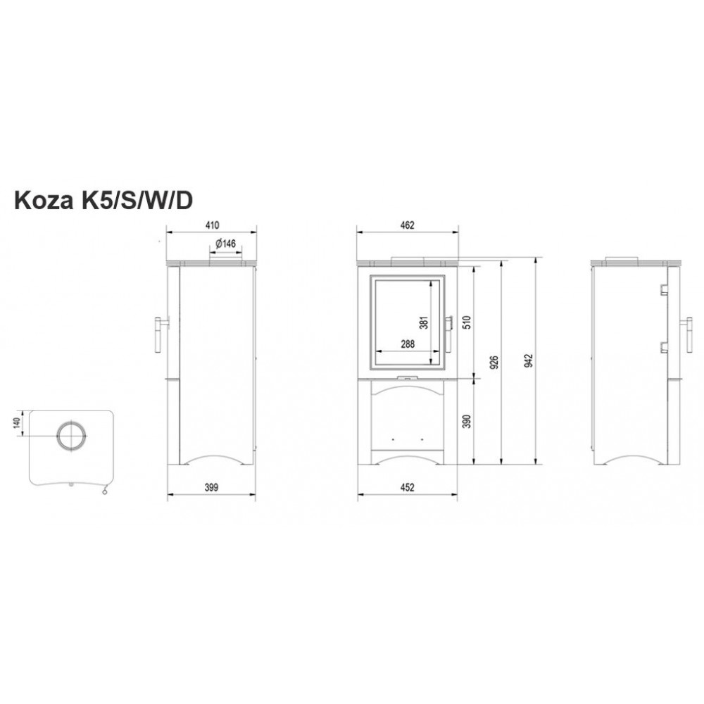 KRATKI Piec wolnostojący KOZA K5 STAL z zamykaną wnęką na drewnoDane techniczne: