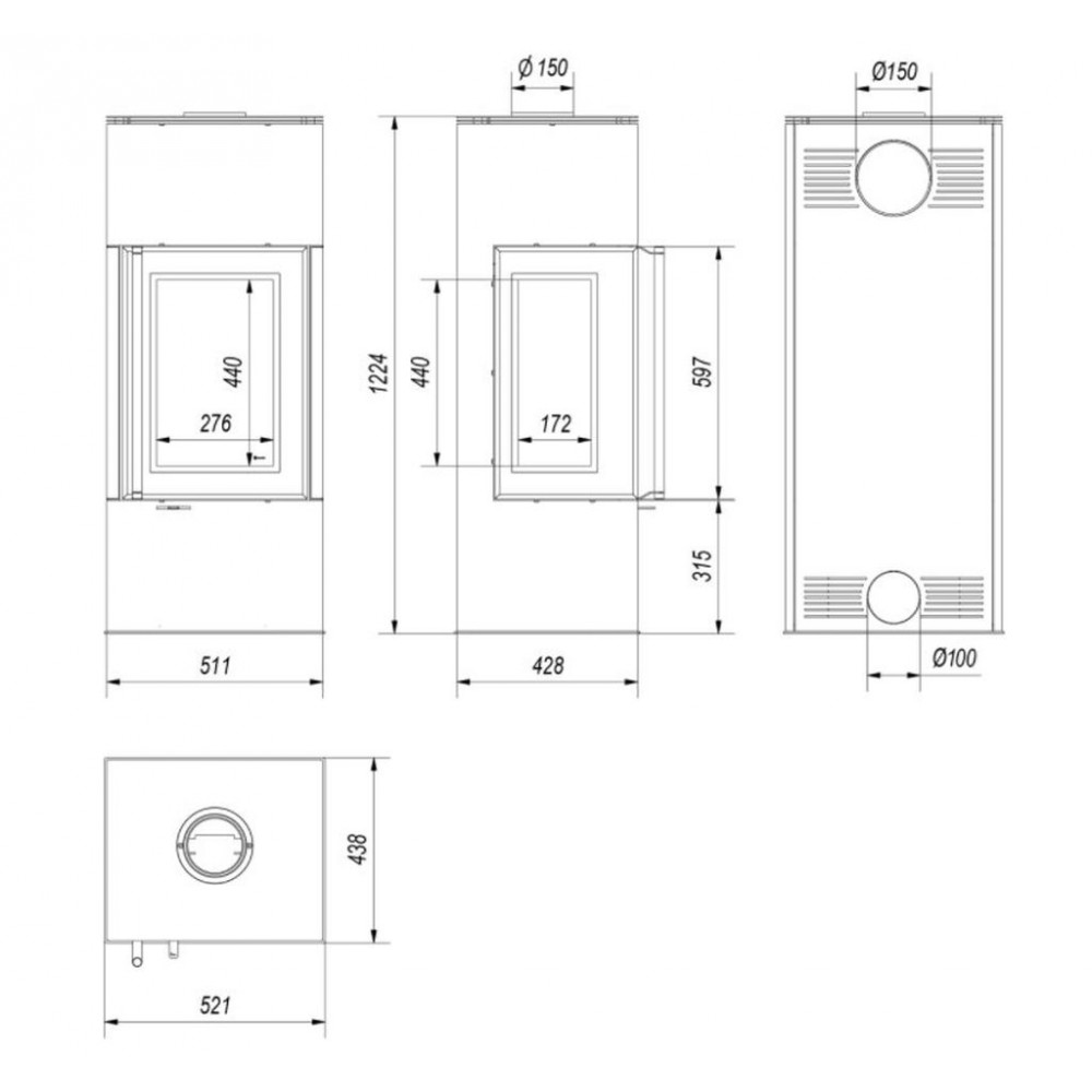 - dostarczanie powietrza do wkładu odbywa się z zewnątrz, dzięki wbudowanemu króćcowi dolotu powietrza fi 100 mm. Sam dolot można podłączyć do pieca od tyłu lub od dołu. Jego regulacja odbywa się za pomocą przepustnicy ustawianej jednym regulatorem znajdującą się poniżej drzwiczek, co wyklucza błędy w niewłaściwym użytkowaniu;?