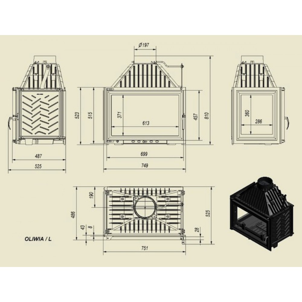 KRATKI Wkład kominkowy OLIWIA 18 LEWADane techniczne:
