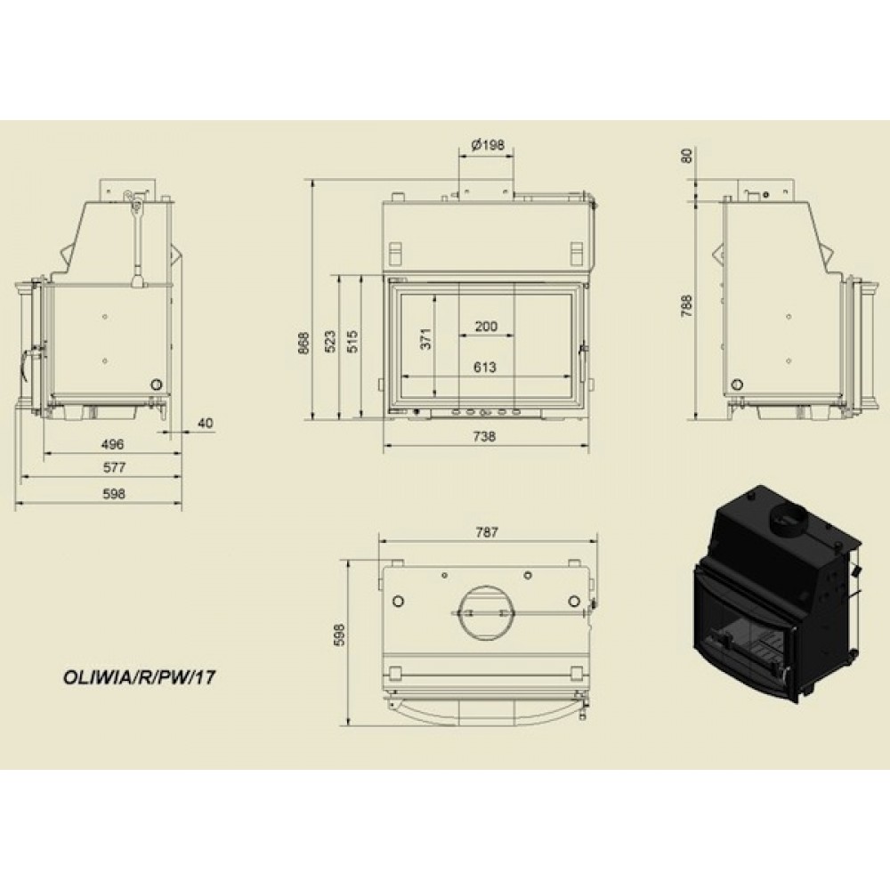 - Pro odeslání do Česka navštivte KRATKI OLIWIA/R/PW/17/W krbová vložka teplovodní, obloukové sklo, s chladící smyčkou