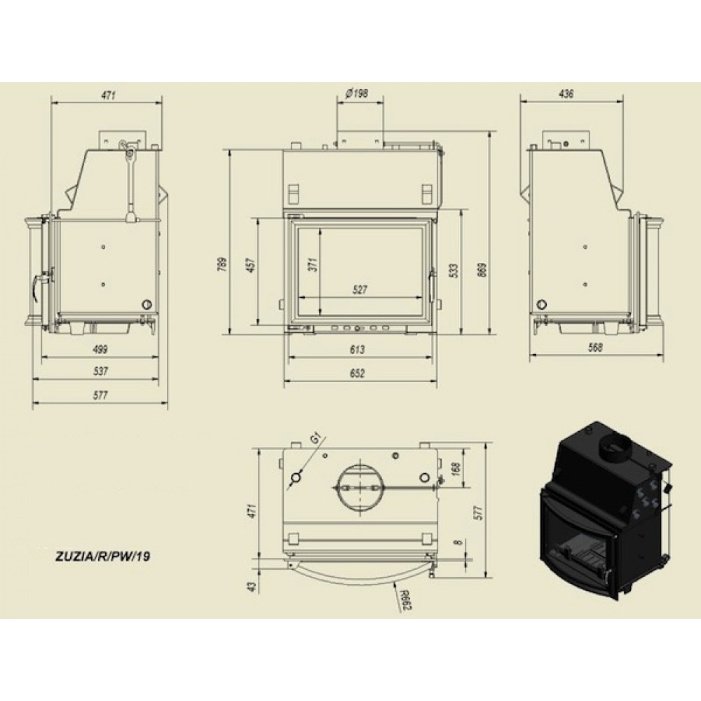- Pro odeslání do Česka navštivte KRATKI ZUZIA/R/PW/19/W krbová vložka teplovodní, obloukové sklo, s chladící smyčkou