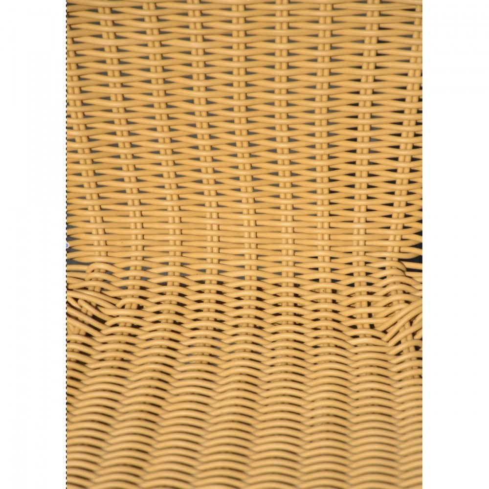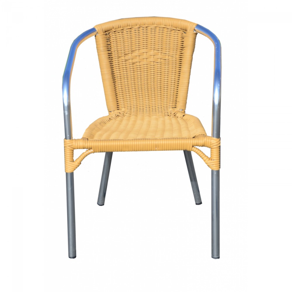 Krzesło wyprodukowane z aluminium oraz sztucznego rattanu.