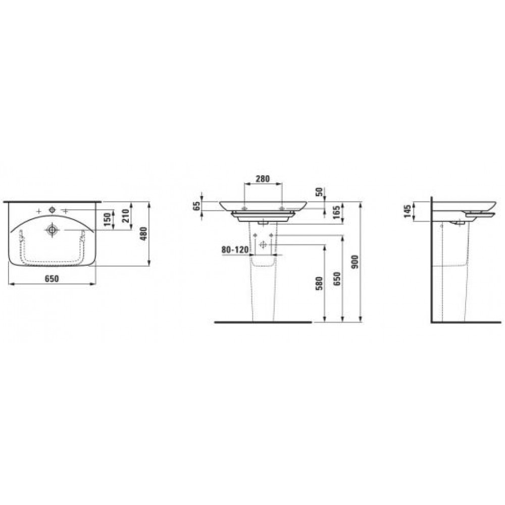 LAUFEN Palace Umywalka ścienna 650 x 480 mm H8107030001041Umywalka ścienna 650 x 480 mm z otworem na baterię na środku