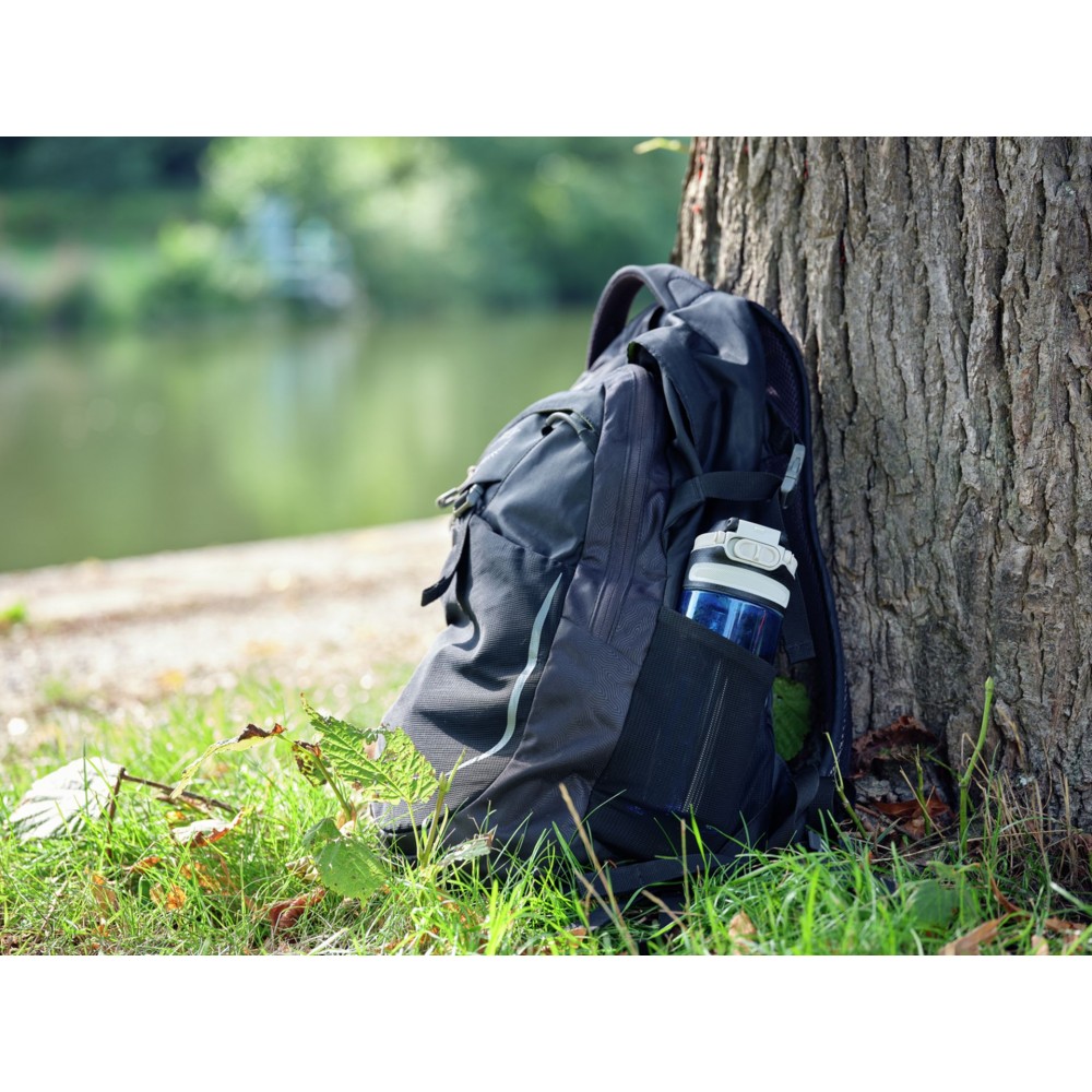 Praktyczny bidon trytanowy Flip o pojemności 550 ml to doskonałe wyposażenie dla wszystkich miłośników aktywności fizycznej i tych osób, które lubią mieć orzeźwiający napój zawsze pod ręką. Model ten został wykonany z wysokiej jakości trytanu, czyli bezpiecznego tworzywa sztucznego, które wyróżnia się niezwykle niską wagą. Dzięki temu bidon idealnie sprawdzi się podczas różnego rodzaju wycieczek, jazdy na rowerze czy biegania. Bez problemu obsługuje się go jedną ręką – pozwala na to kompaktowa forma bidonu i praktyczna zakrętka. Model ten można napełniać zimnymi lub gorącymi napojami o temperaturze do 60°C. Zakrętka bidonu trytanowego Flip wykonana została z wytrzymałego tworzywa sztucznego, które wyróżnia się antypoślizgową powłoką. Dzięki temu pewnie leży nawet w mokrej dłoni. Zakrętka posiada zabezpieczenie przed niekontrolowanym otwarciem, praktyczny uchwyt do przenoszenia oraz filtr, dzięki któremu można komfortowo pić napoje z kawałkami owoców czy miętą. Nadaje się do mycia w zmywarce, więc zachowana zostaje pełna higiena użytkowania.