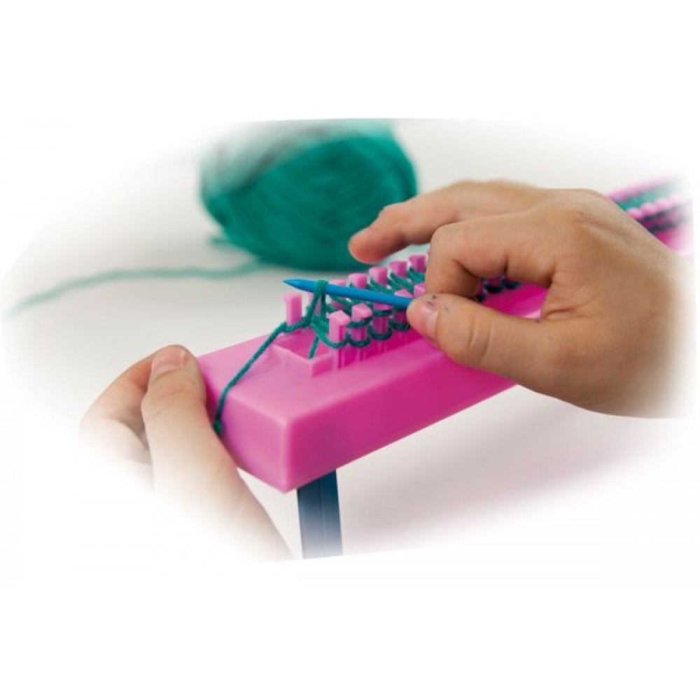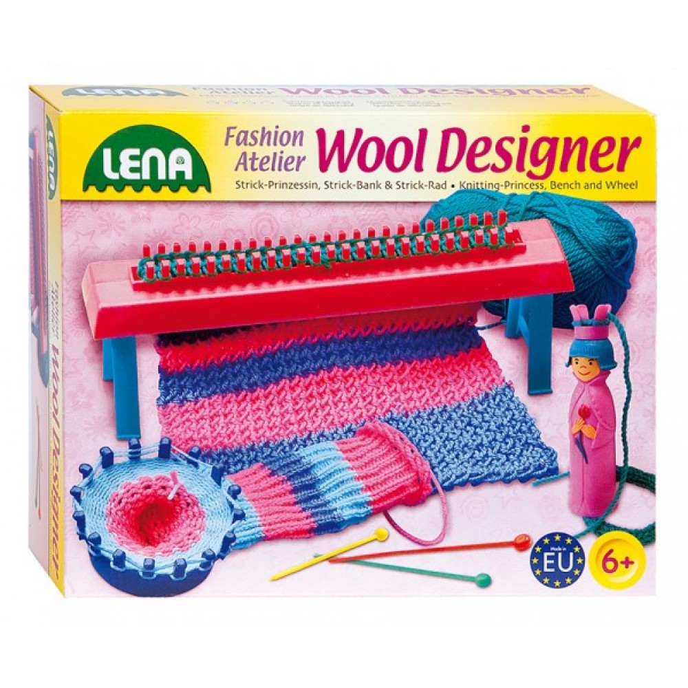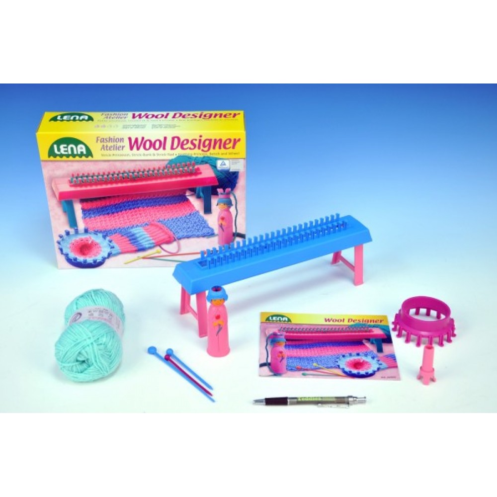 Lena warsztat tkacki 43042003Klasyczny zestaw do tkania, składa się z płyty dziewiarskiej, koła, igiły, 1 koloru włóczki i motka o kształcie laleczki. Dzięki niemu można zrobić modne akcesoria z wełny. Zabawka uczy kreatywności, wyrabia zdolności manualne i poprawia koncentrację. Zabawka przeznaczona: dla dzieci w wieku od 6 lat.