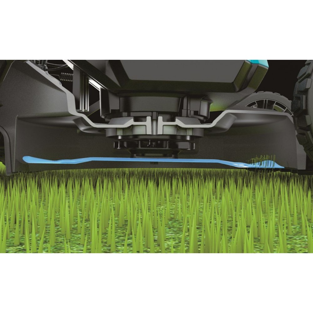 Centralna regulacja wysokości koszenia w 10 pozycjach (20–75 mm) umożliwia łatwe dopasowanie do warunków trawnika. Nowa konstrukcja poprawia napełnianie kosza i wydłuża czas pracy na jednym ładowaniu. Dostępny jest również tryb bardzo cichej pracy.
