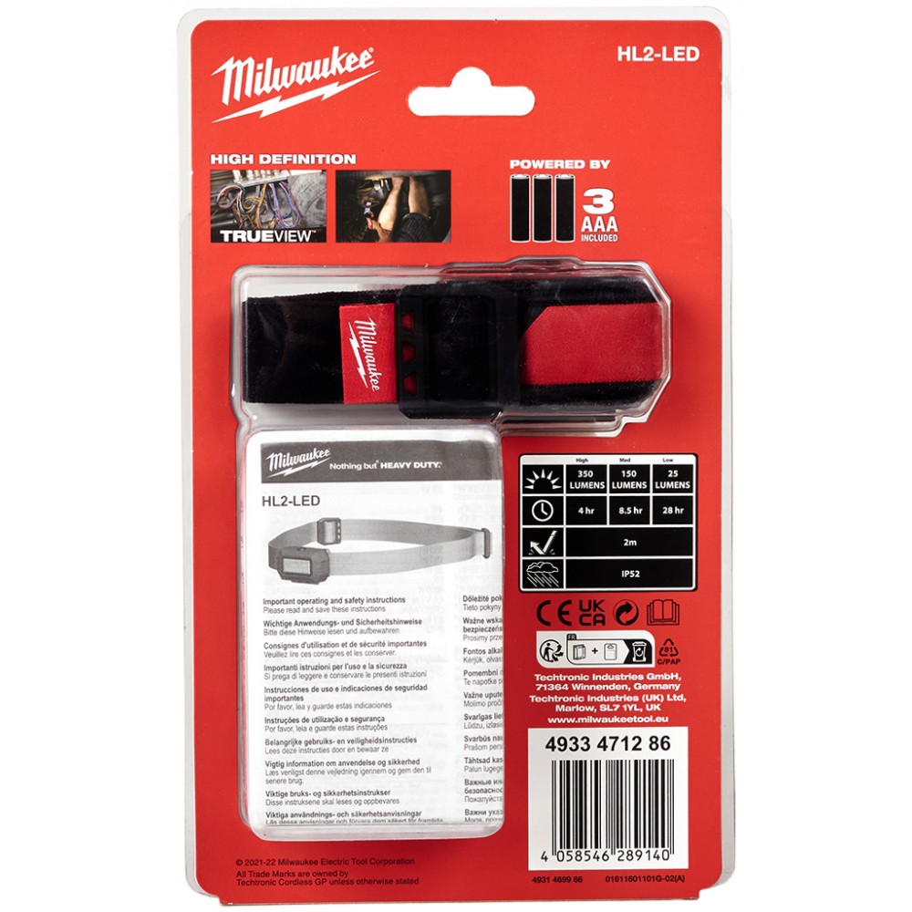 - Magyarországra történő szállítás Milwaukee HL2-LED Elemes fejlámpa 4933471286