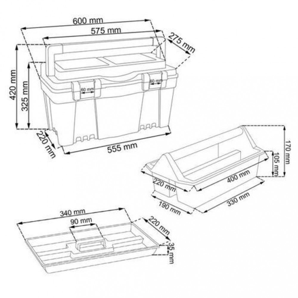 Firebird Toolbox ma wewnętrzną wyjmowaną przegrodę i 2 lub 3 przezroczyste organizery na pokrywie. Dzięki szerokiemu, profilowanemu uchwytowi i dwóm sztywnym aluminiowym zamkom można przenosić narzędzia o wadze od 12 do 27 kg. Wykonany jest z wysokiej jakości tworzywa sztucznego, które charakteryzuje się wysoką wytrzymałością i odpornością na uszkodzenia mechaniczne.Parametry: