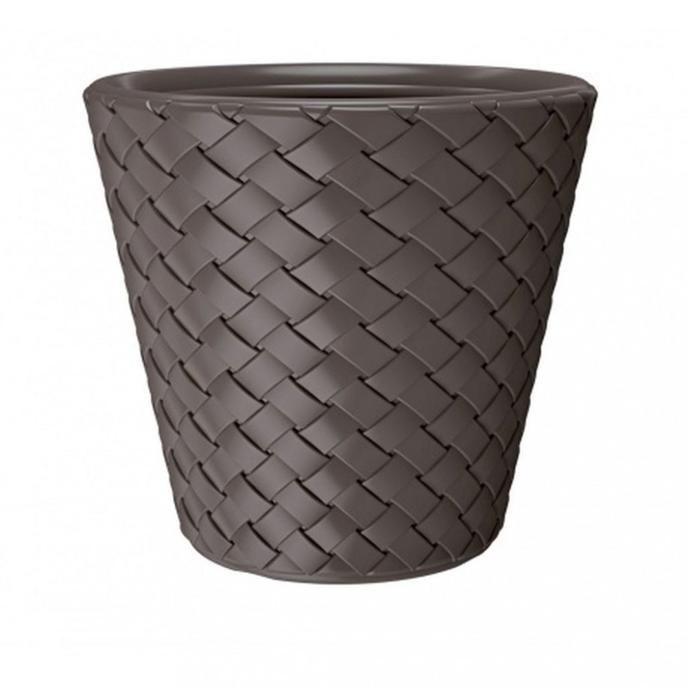 Mrozoodporna, a zarazem niezwykle urocza doniczka MATUBA firmy Prosperplast to hit wśród pojemników na rośliny. Wykonana jest z mocnego tworzywa sztucznego, które wykazuje odporność nie tylko na warunki atmosferyczne, ale i obtłuczenia. Ozdobna faktura przypominająca plecionkę wiklinową sprawia, że doniczka staje się niezwykle trwałą alternatywą dla osłonek na kwiaty wykonanych z naturalnych materiałów.Donica DBMA300 o klasycznym, rozszerzający się ku górze kształcie, znakomicie eksponuje wszelkiego rodzaju rośliny, a zdobienie wiernie imitujące naturalne włókna, wprowadza nutkę świeżości w każdym wnętrzu, niezależnie od stylu jego aranżacji. Doniczka MATUBA o wysokości 27,8 cm i średnicy 30 cm ma elegancki, a zarazem nowoczesny kolor umbra (ciemny brąz). Dzięki temu doskonale współgra z roślina zarówno kwitnącymi, jak i zielonymi.