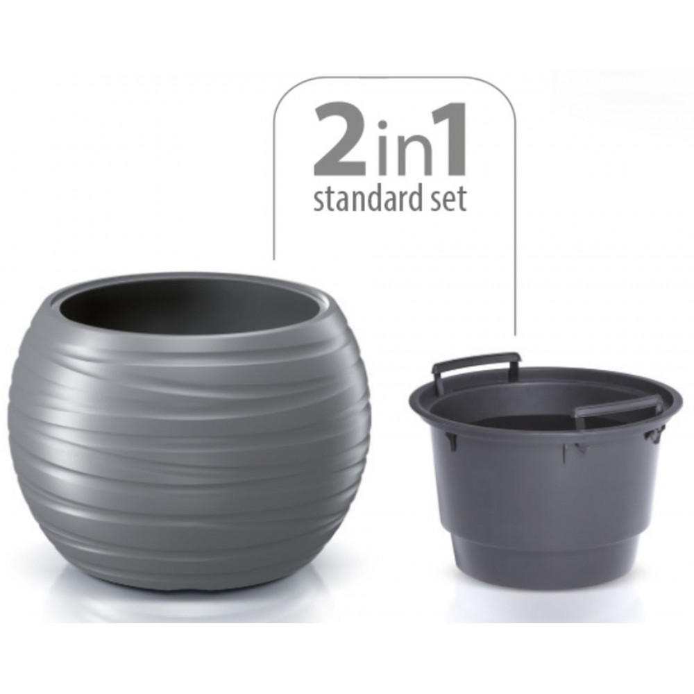 - Pro odeslání do Česka navštivte Prosperplast MAZE Květináč kulatý s vkladem 39,6cm, šedý kámen DBMZK400