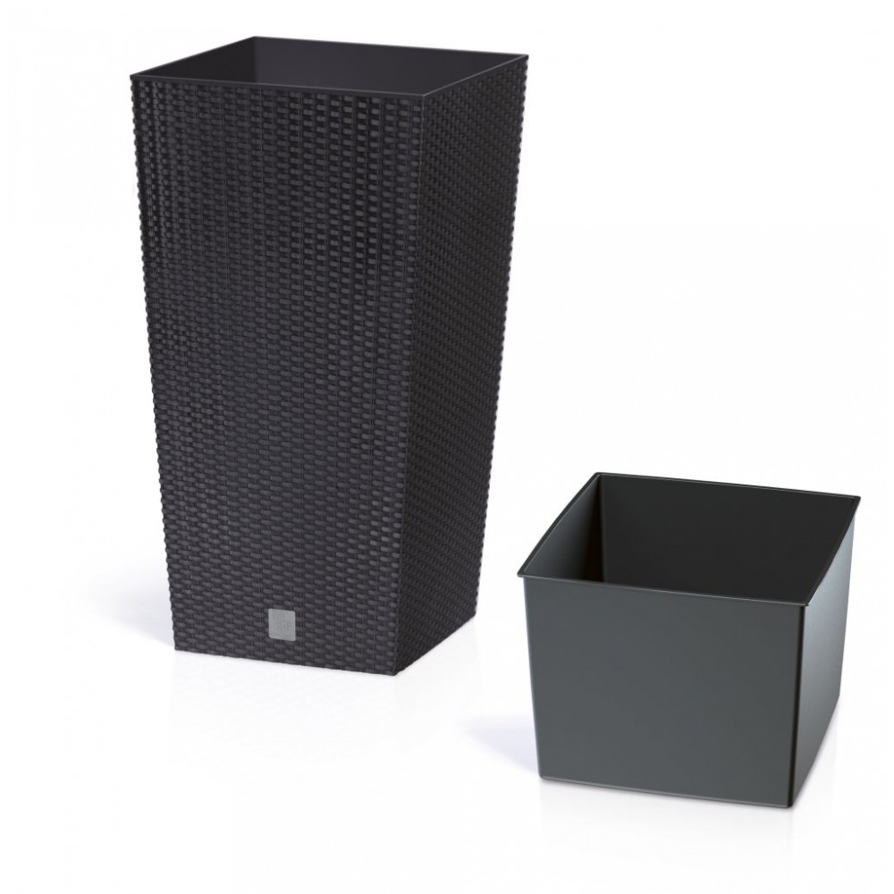 Nowy zamysł w estetyce wzornictwa firmy Prosperplast. Wysoka doniczka RATO Square o fakturze wiernie imitującej plecionkę z naturalnego rattanu, w klasycznej, czystej formie, pozwala kreować piękne unikatowe wnętrza i bez ograniczeń aranżować przestrzeń wokół domu, godząc różne style i upodobania. Jej funkcjonalność wyraża się również w komforcie użytkowania bez względu na aurę. W zestawie z wkładem.