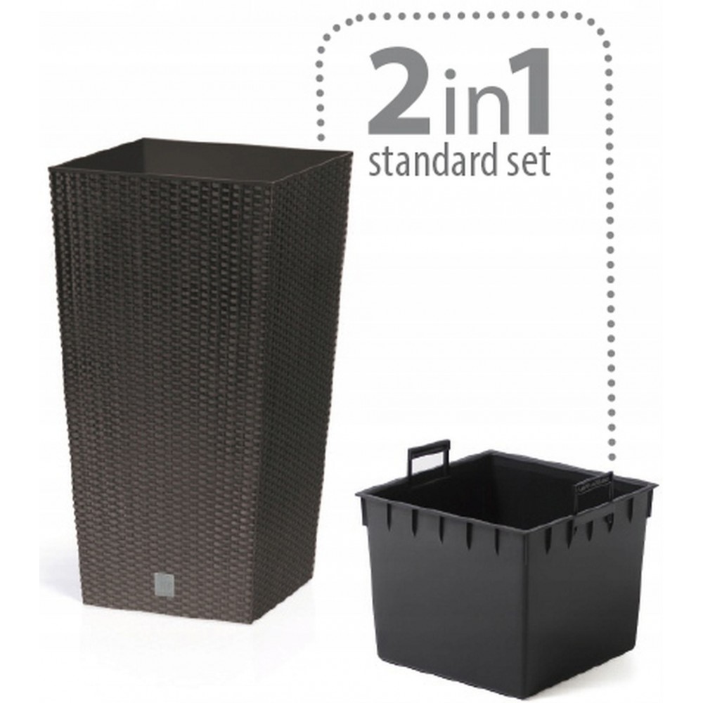 Nowy zamysł w estetyce wzornictwa firmy Prosperplast. Wysoka doniczka Rato Square o fakturze wiernie imitującej plecionkę z naturalnego rattanu, w klasycznej, czystej formie, pozwala kreować piękne unikatowe wnętrza i bez ograniczeń aranżować przestrzeń wokół domu, godząc różne style i upodobania. Jej funkcjonalność wyraża się również w komforcie użytkowania bez względu na aurę.