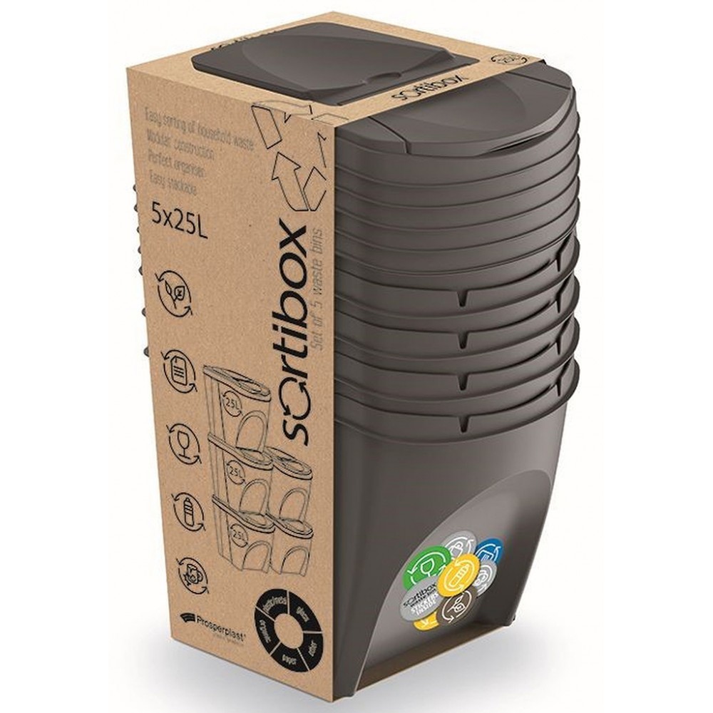 - Pro odeslání do Česka navštivte Prosperplast SORTIBOX Sada 5 odpadkových košů 5x25l, šedý kámen IKWB25S5