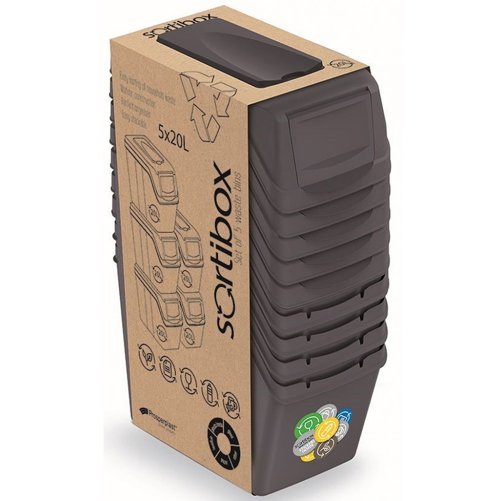 - Pro odeslání do Česka navštivte Prosperplast SORTIBOX I Sada 5 odpadkových košů 5x20l, antracit ISWB20S5