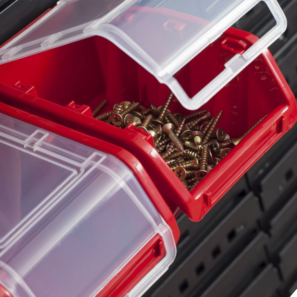 Jest to bardzo praktyczne rozwiązanie do przechowywania małych elementów wyposażenia. Pojemnik pomieści sporą ilość drobiazgów, dzięki czemu będą łatwiejsze do odnalezienia i pod ręką. Kuwety można ustawiać jedną na drugiej, dzięki czemu zajmą mniej miejsca. Kuwety można również powiesić na tablicy warsztatowej lub listwie ściennej - umożliwiają to specjalne zaczepy. Dzięki zastosowaniu przezroczystej klapki zawartość jest chroniona przed wysypaniem, a jednocześnie doskonale widoczna bez konieczności jej otwierania. Wysoka jakość materiału oraz wykonania zapewnią długie użytkowanie i zadowolenie z produktu.