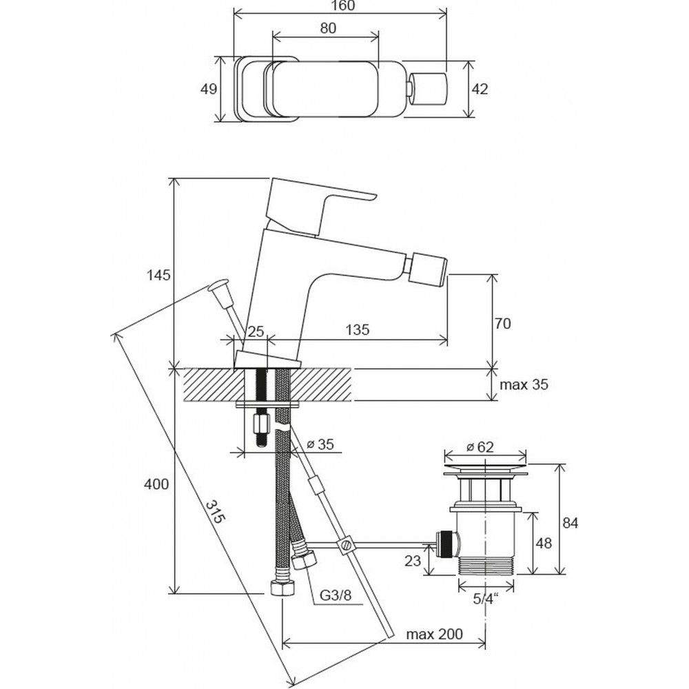 - węże przyłączeniowe: elastyczne 400 mm, średnica G3/8