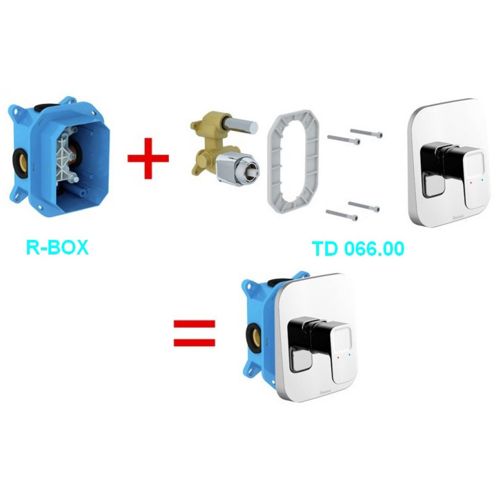 R-box jest uniwersalnym systemem do montażu wannowych i prysznicowych baterii podtynkowych, które są zabudowane w ścianie. Korpus baterii wykonany jest z wysokiej jakości mosiądzu. W odróżnieniu od klasycznych baterii podtynkowych montaż R-boxu jest prosty, a wymiana zewnętrznej części baterii łatwa i szybka. Zewnętrzną część R-box montuje się dopiero po całkowitym ukończeniu prac budowlanych, unikając w ten sposób porysowania lub uszkodzenia chromowanych elementów baterii.