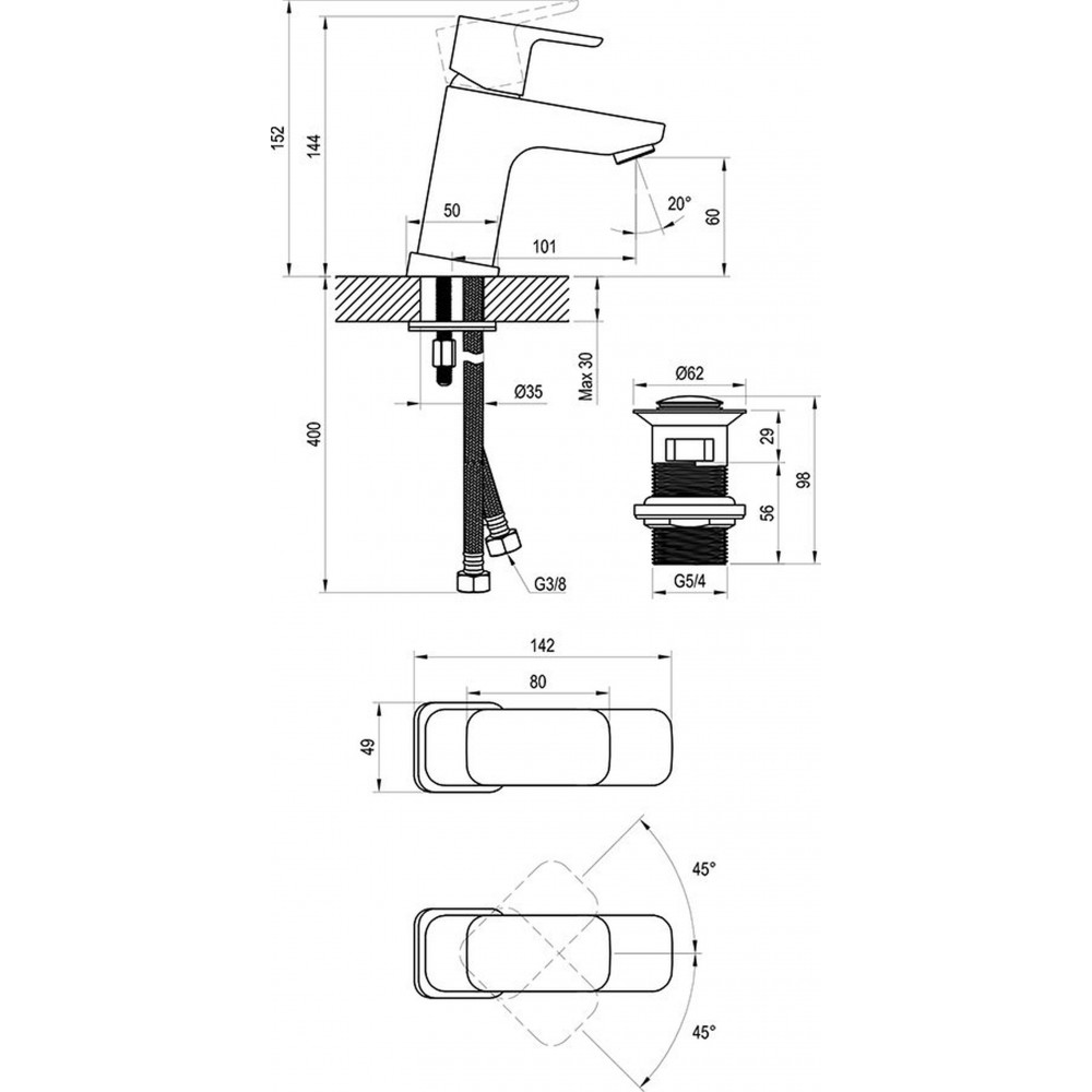 • węże przyłączeniowe: elastyczne 450 mm, średnica G3/8