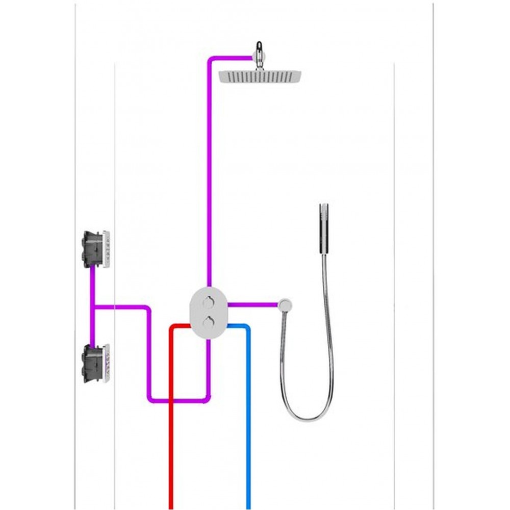 - pozwala na jednoczesną instalację deszczownicy, słuchawki prysznicowej i napuszczania wanny lub dysz do hydromasażu w kabinie prysznicowej