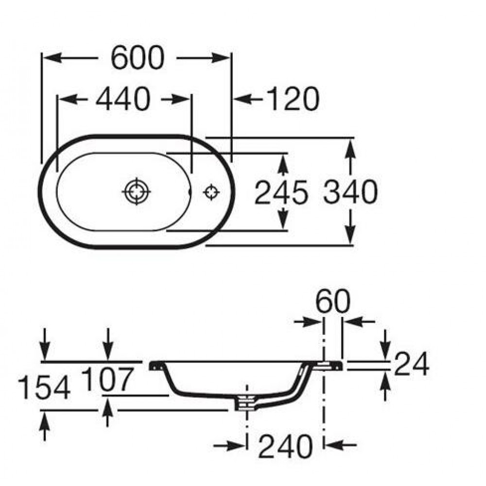 Roca Meridian umywalka blatowa 60 x 34 cm A32724E000Długość: 340 mm