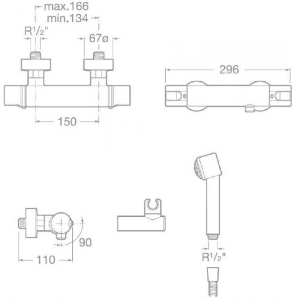 Roca Moai-T bateria natryskowa ścienna z termostatem,wężem i słuchawką A5A1346C00