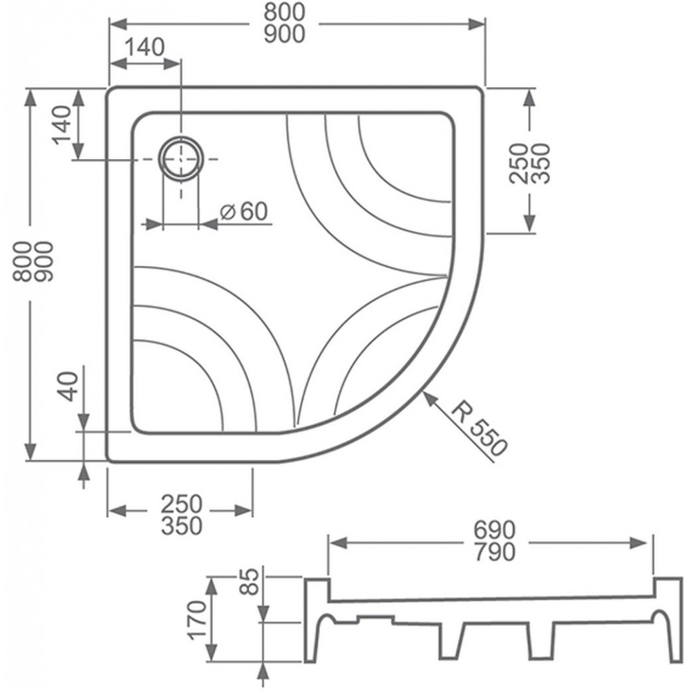 Roltechnik Brodzik półokrągły HAWAII-P ze zintegrowaną obudową 80×80×17 cm, R55 8000024Półokrągły brodzik akrylowy z obudową zintegrowaną
