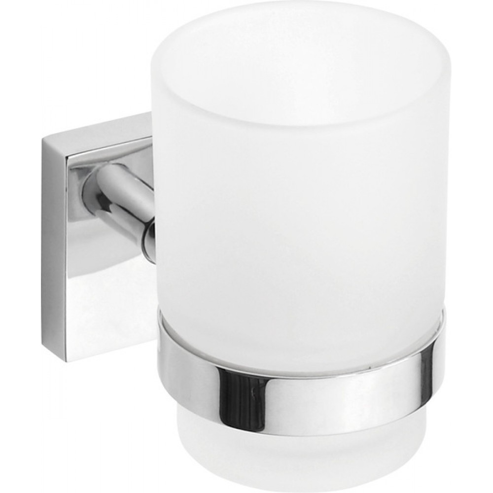 Kubek szklany 132110012Uchwyt wykonany z mosiądzu, pokryty chromem w wykończeniu chrom połysk. Kubek ze szkła mlecznego.