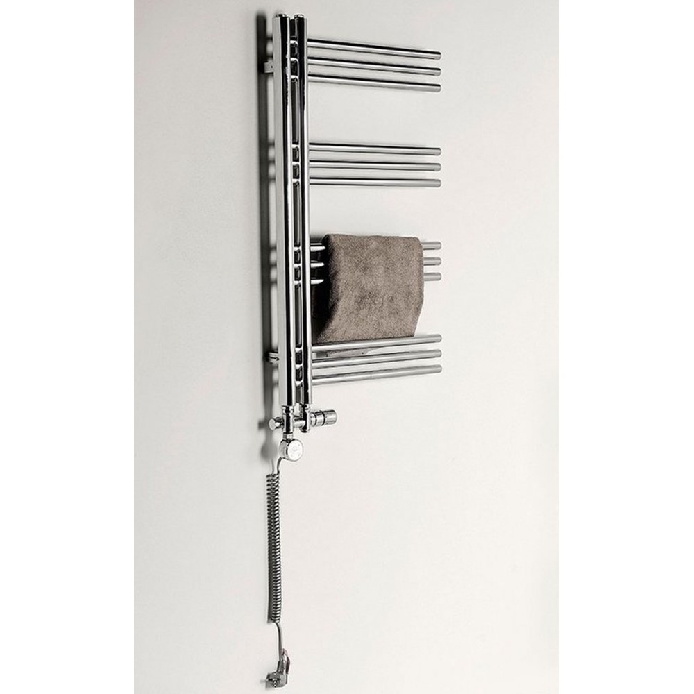 Designerski grzejnik łazienkowy o wyjątkowym wyglądzie wykonany jest z chromowanych rur stalowych. Grzejnik doceni jego praktyczność, dzięki swojej konstrukcji umożliwia proste i wygodne zawieszenie ręczników z boku na poziomych prętach. Praktyczny rozstaw 50 mm połączenia środkowego umożliwia połączenie z zaworami wzorniczymi z naszej oferty oraz w połączeniu z biegunem elektrycznym.