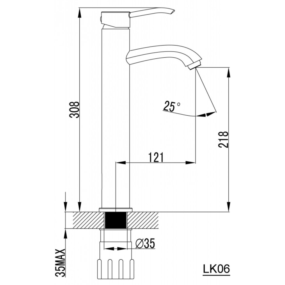 SAPHO LUKA bateria umywalkowa bez odpływu, wysoka 308 mm, chrom LK06Wysokość baterii 308 mm.