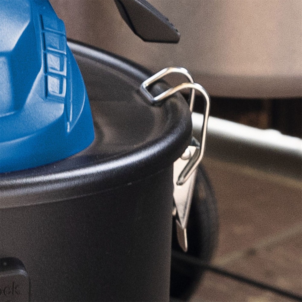 Wytrzymały pojemnik o pojemności 20 litrów umożliwia dłuższą pracę bez częstego opróżniania. Jest to dodatkowo bardzo łatwe dzięki szybkozłączom. Duży promień pracy zapewnia niepalny wąż ssący o długości 150 cm, odpowiedni także do pracy z popiołem. Praktyczny uchwyt na akcesoria pomaga utrzymać porządek i mieć wszystko zawsze pod ręką.