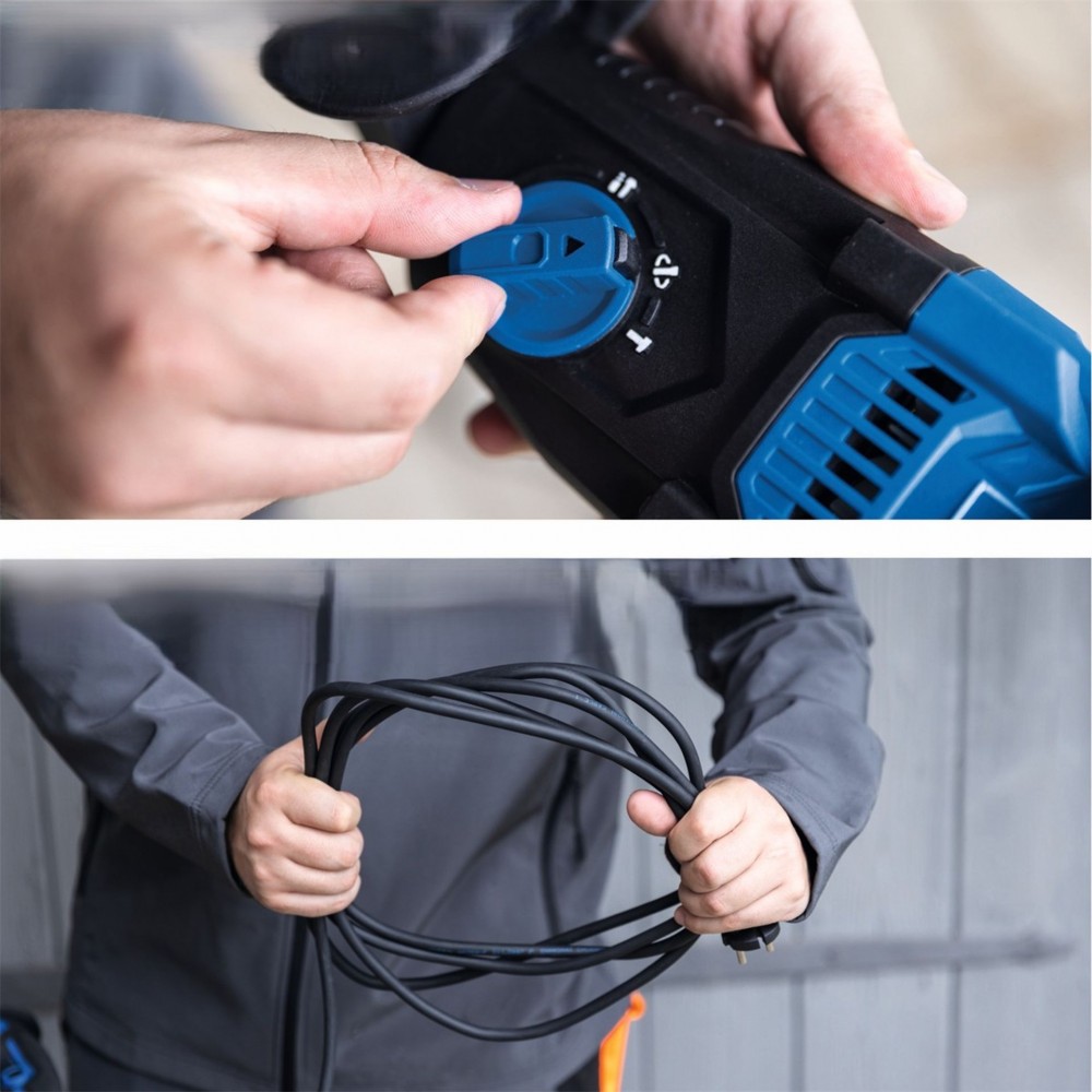 Serce urządzenia stanowi wydajny silnik elektryczny o mocy 1 050 W, który zapewnia niezawodną pracę i wystarczającą siłę nawet przy wymagającym użytkowaniu. Płynna regulacja obrotów w zakresie 0–1 230 obr./min umożliwia precyzyjną kontrolę pracy i dopasowanie do aktualnego materiału. Przełączanie między trybami jest szybkie i wygodne dzięki praktycznemu przełącznikowi, bez konieczności użycia dodatkowych narzędzi.
