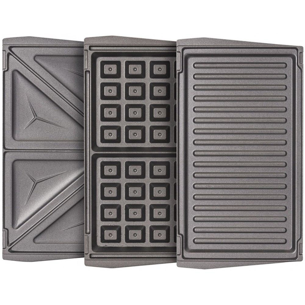 • 3 wymienne płyty do pieczenia 126 x 230 mm (trójkątny kształt talerzy na kanapki, panini, gofry)